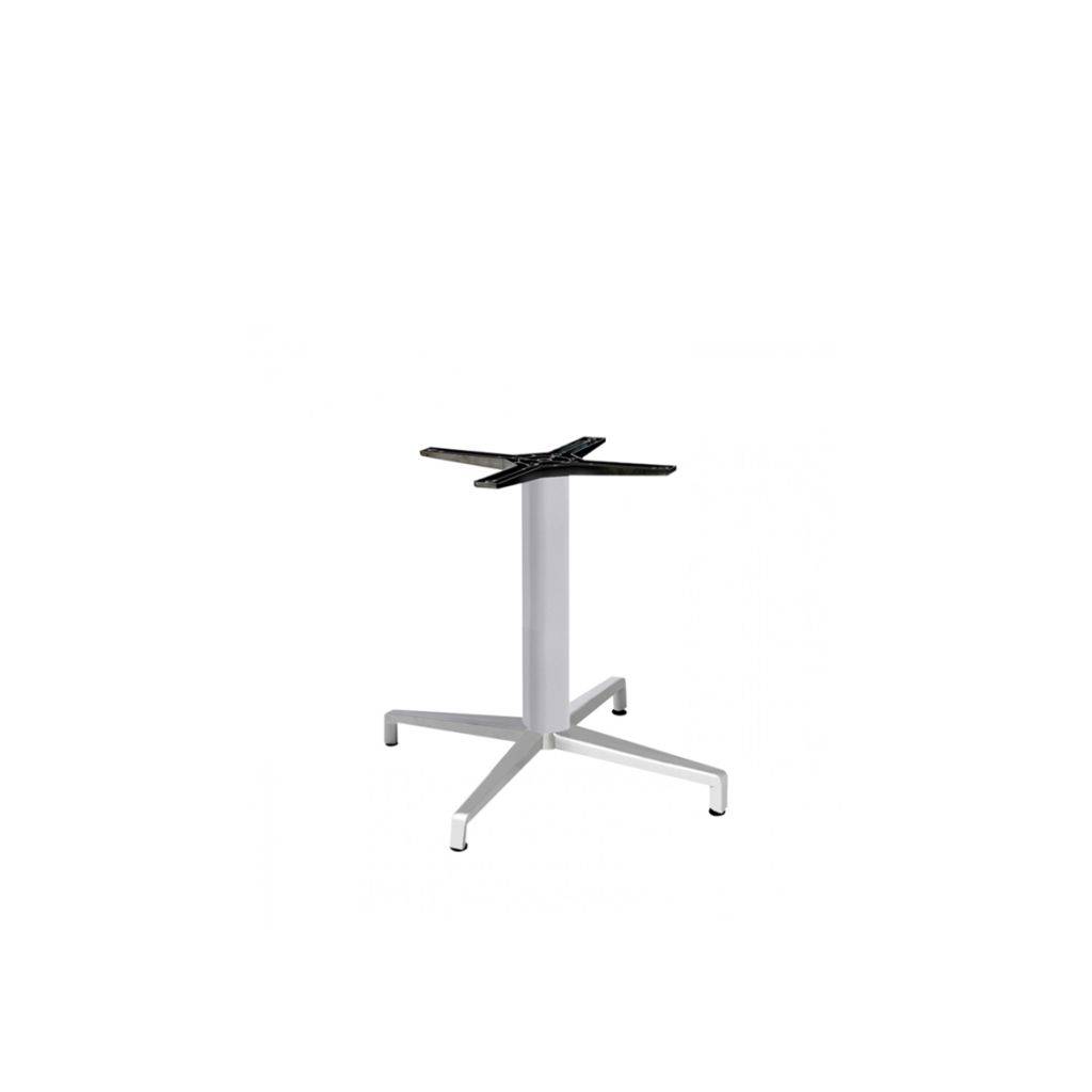 Domino tafelpoot op vierkante aluminium kolom met afgeronde hoeken, geschikt voor gemiddeld grotere blad-diameters .