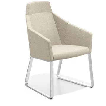 Het hoogwaardige materiaal, verwerkt tot kruisvoet of tot 2 sledeframes, geeft hem een soevereine uitstraling, ook in restaurants, bestuurskamers en directiekantoren.