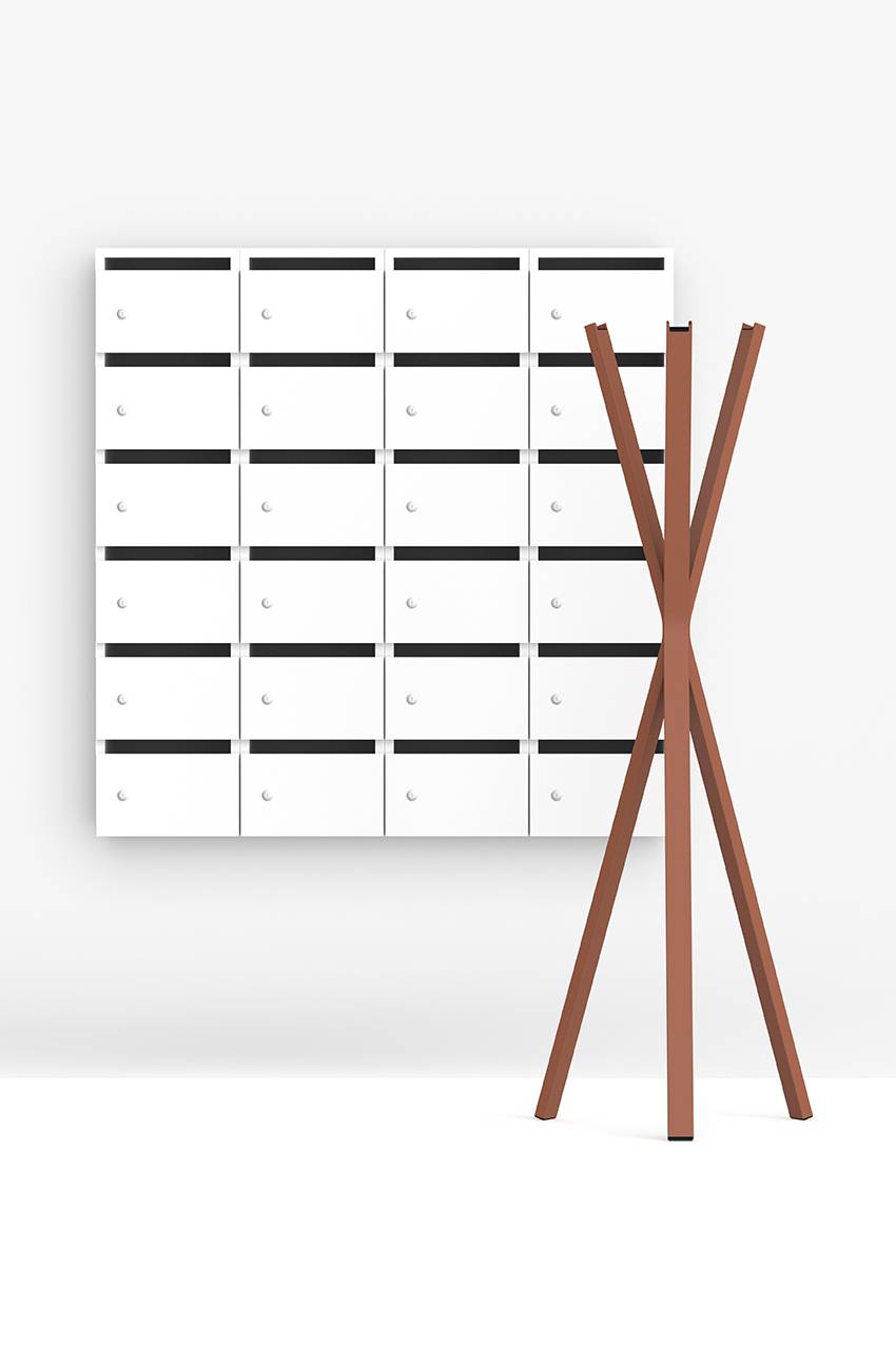 Combineer de postvakkenkast met een stalen onderstel (Aquarius OS), verkrijgbaar in verschillende hoogtes en breedtes. Of een aluminium muursteun (Aquarius WP) waarop de kasten lijken te zweven.