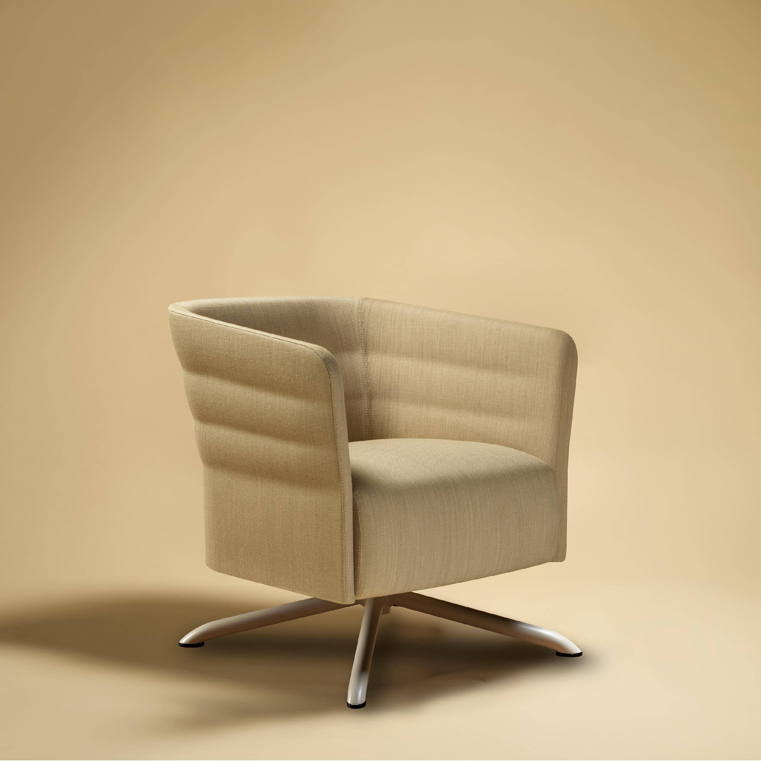 Standaard wordt de stoel geleverd met de stofgroep AL en een 4-poots metalen onderstel.