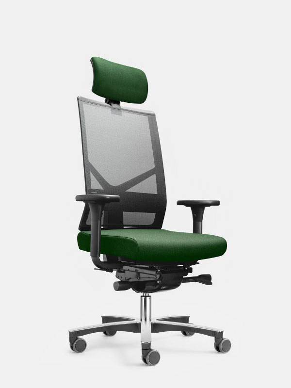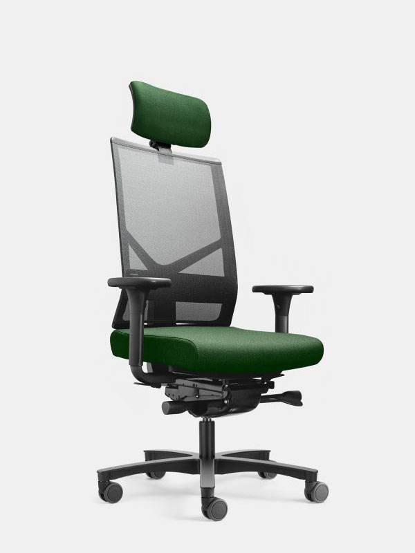 Zeer comfortabele en ergonomische bureaustoel, standaard voorzien van net-bespannen rugleuning, punt synchroon-verstelling mét gepatenteerde ERGO-TOP® zit techniek (een naar alle kanten meebewegende zitting), zit-diepteverstelling, 3D multifunctionele ovale SOFTPAD armleuningen (Type 2) en een in hoogte verstelbare LENDENSTEUN!.