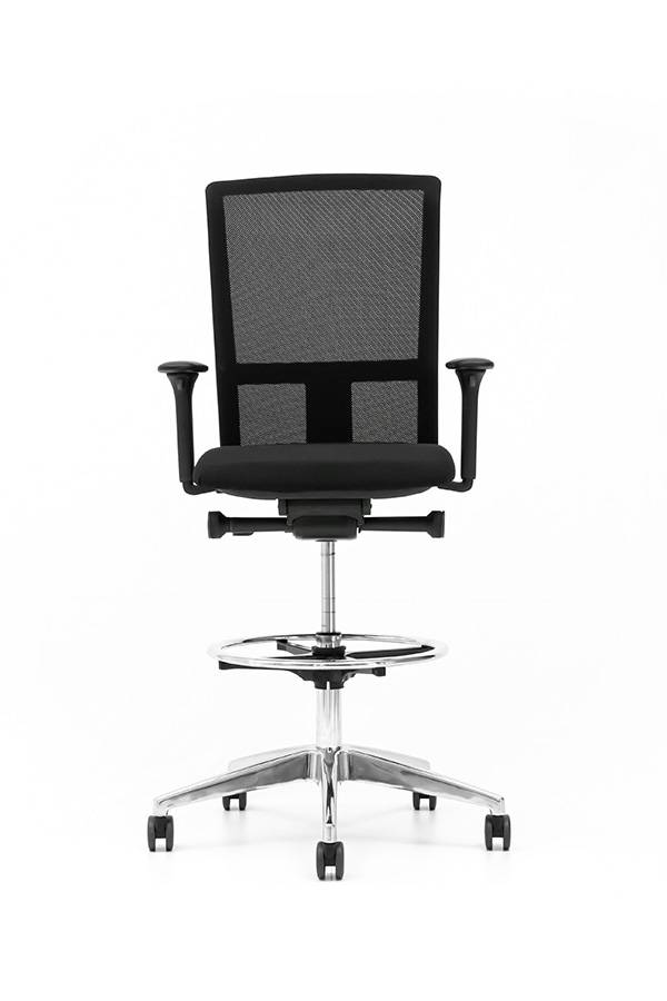 De Se7en NET baliestoel heeft tevens een synchroonverstelling met gewichtsregeling, zitdiepteverstelling, 4D armleggers en een aluminium gepolijst voetkruis met universele wielen (geschikt voor elk vloertype)